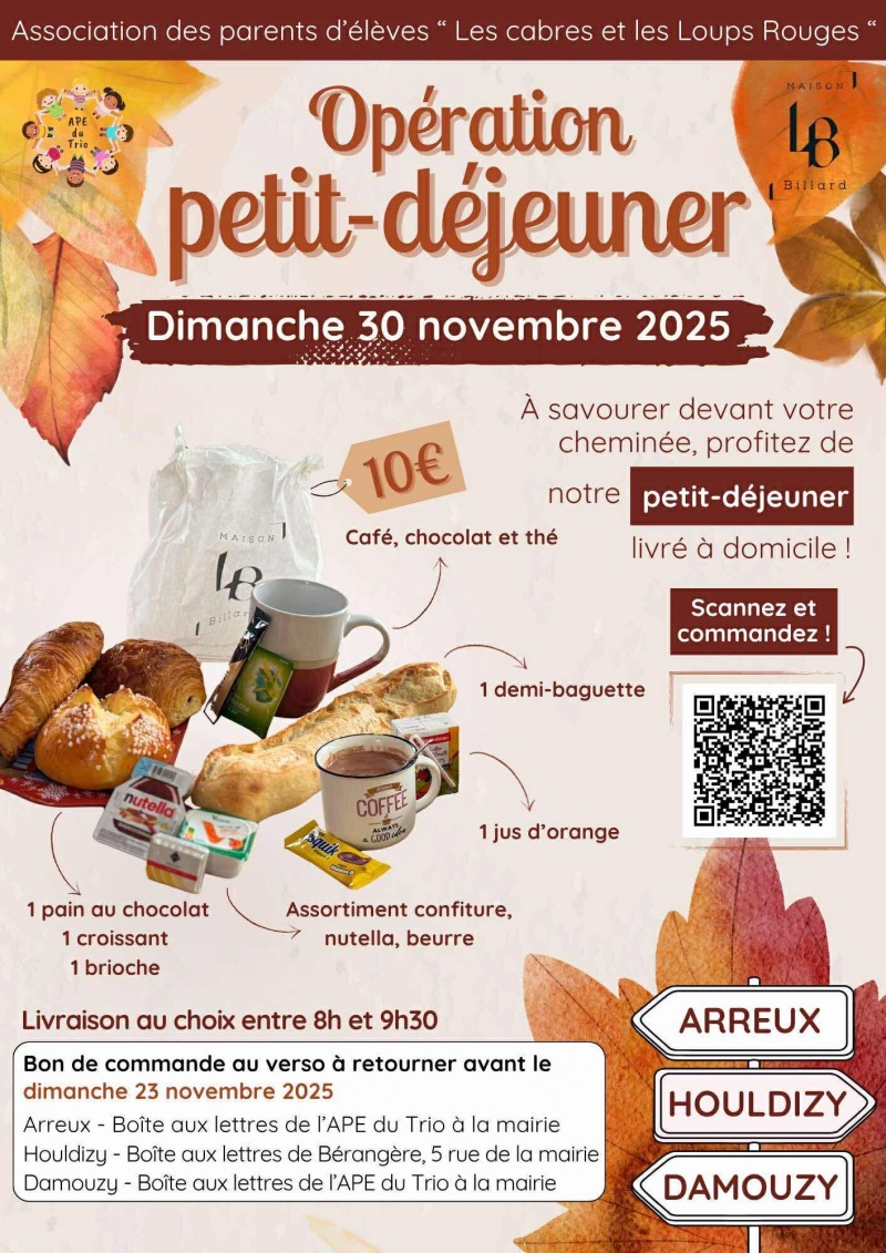 Hummm !! Vous rêvez d'un bon petit-déjeuner livré à votre domicile? Et bien, vous l'avez et rien de tel pour bien démarrer un dimanche matin de détente! Pour seulement 10€ le sac est bien garni. C'est le dimanche 30 novembre! N'hésitez pas à passer votre commande (avant le 23 novembre) sur le site https://www.helloasso.com/.../commande-de-petits-dejeuners-2