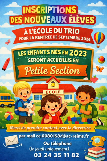 Pour la rentrée de septembre 2026, les enfants nés en 2023 seront accueillis en Petite Section.